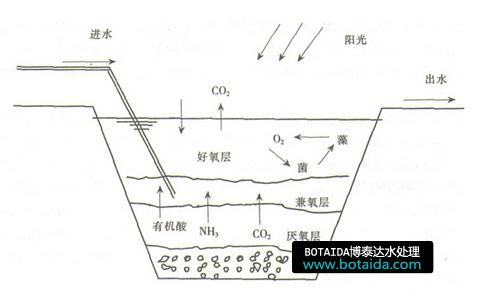 在傳統(tǒng)基礎(chǔ)上改進(jìn)的高效藻類穩(wěn)定塘比傳統(tǒng)的穩(wěn)定塘有更多的生物,并增加攪拌裝置,促進(jìn)污水混合;調(diào)節(jié)塘內(nèi)的氧氣和二氧化碳的濃度,及水溫和水質(zhì),從而提高有機物、氮和磷的去除率。高效藻類穩(wěn)定塘受光照、溫度、水深和塘內(nèi)流速的影響大。