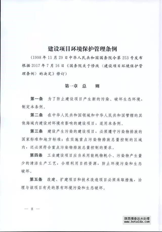 7月16日,國務院以國務院第682號令公布了《國務院關于修改〈建設項目環(huán)境保護管理條例〉的決定》,自2017年10月1日起施行。