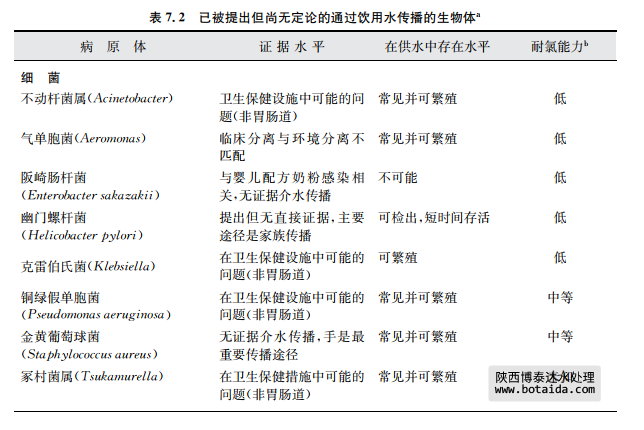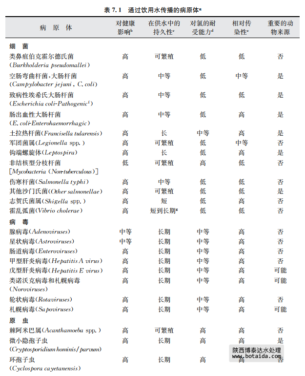 a該表中的病原體在飲用水供應(yīng)中的發(fā)生與公眾衛(wèi)生密切相關(guān)這一事實(shí)已經(jīng)被證實(shí)。更多關(guān)于本表中病原體和其 他病原體信息見(jiàn)第11章內(nèi)容。