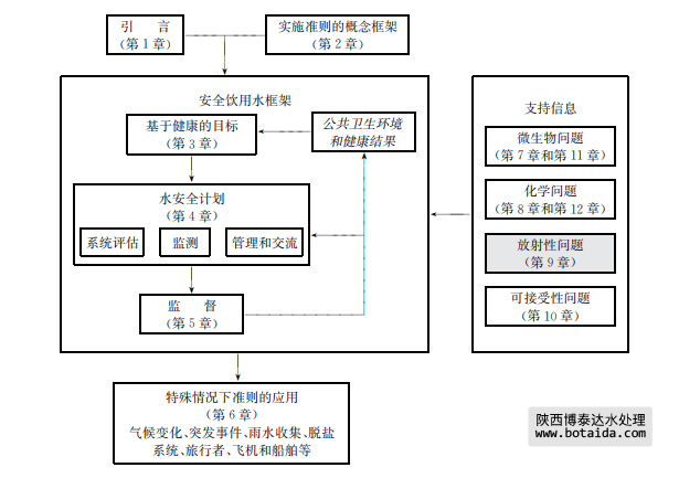 對于健康風(fēng)險(xiǎn)評價(jià)來說,本準(zhǔn)則對天然放射性同位素和人工放射性同位素同樣適用。但 對于風(fēng)險(xiǎn)管理,二者還是有些差別,因?yàn)閺睦碚撋?,人工放射性同位素在進(jìn)入供水系統(tǒng)之前是 可控的。相反,對于天然放射性同位素來說,在消費(fèi)者使用前,可在任何地點(diǎn)或多個(gè)地點(diǎn)都有 進(jìn)入供水系統(tǒng)的潛在可能性。因此,在飲用水中天然放射性同位素往往較難實(shí)施控制。
