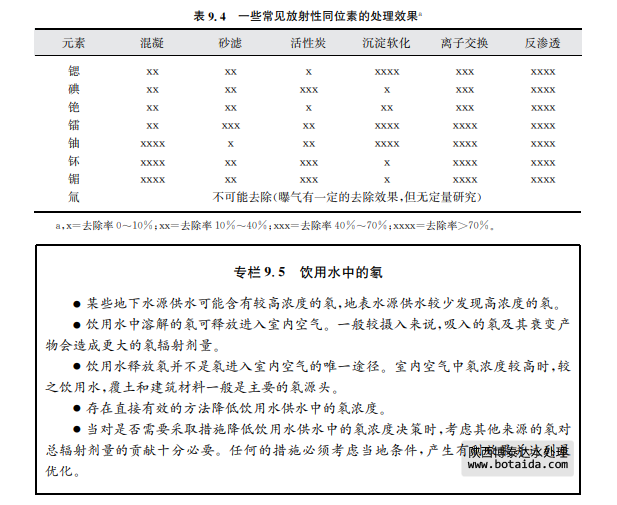 鈾、鐳以及氡都溶解于水。地表水(如江河湖泊)中含有氡,在水流過巖石和土壤過程中 易因攪動作用釋放到大氣中。泉水和井水等地下水通常比地表水含有更高的氡,在比較極端的情況下,這類水源作為飲用水供應(yīng)可能含有極高含量的氡(見專欄9.5)。