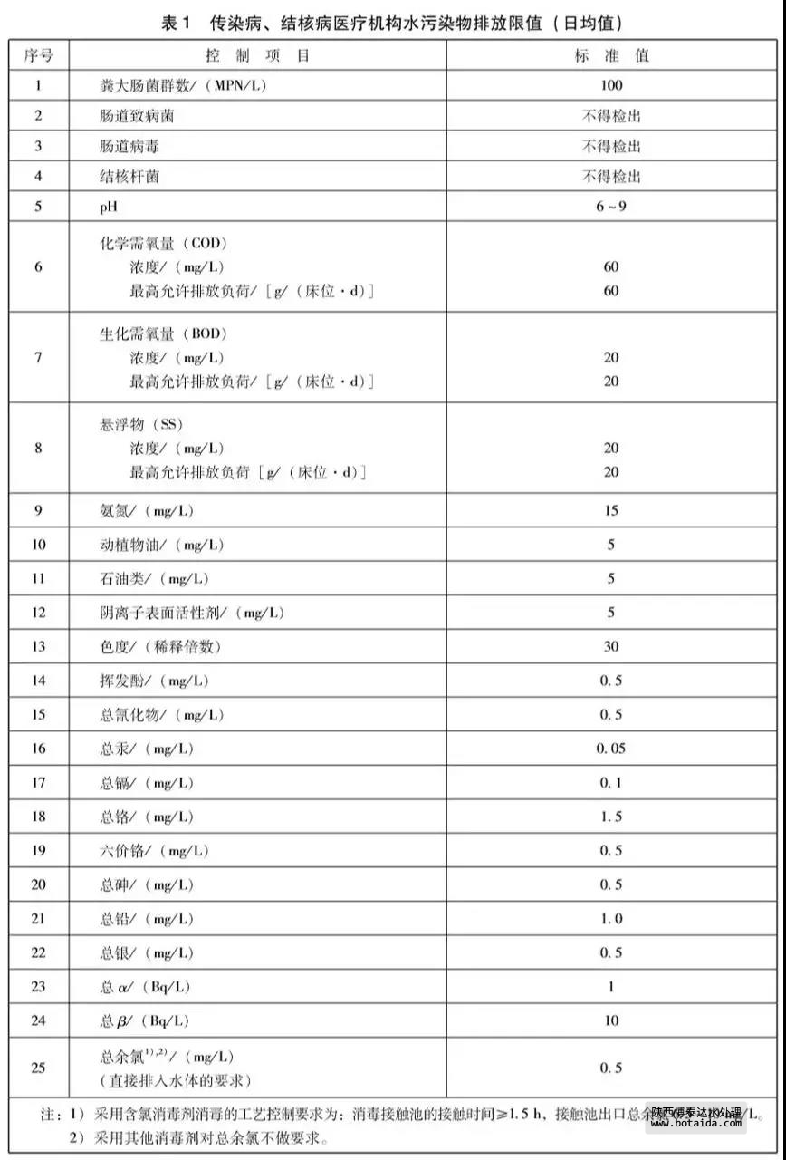 來源:《醫(yī)療機構(gòu)水污染排放標準》GB 18466-2005