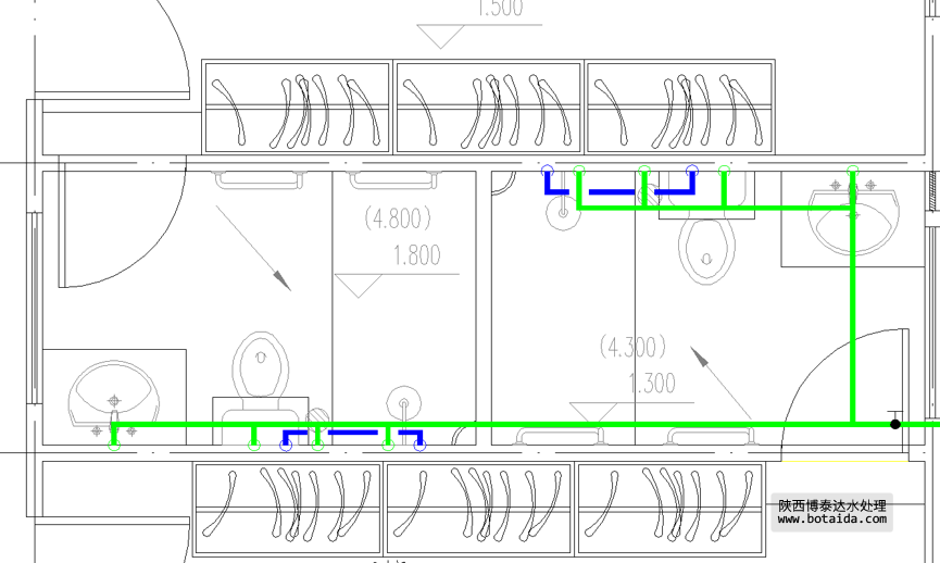 衛(wèi)生間給水和熱水,藍色為熱水管,綠色為給水管