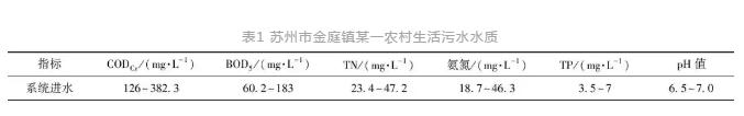 采用鐵碳-砂濾組合進(jìn)行強(qiáng)化除磷,相比化學(xué)法,操作簡單,維護(hù)量小,從而為鐵碳-砂濾的深度除磷工藝在農(nóng)村生活污水中的應(yīng)用,一級脫氮除磷強(qiáng)化提供解決思路。為分析鐵碳-砂濾除磷工藝實際工程中的除磷效果,將該工藝應(yīng)用于蘇州市金庭鎮(zhèn)某一農(nóng)村生活污水處理項目。該項目污水處理系統(tǒng)采用固定床生物膜工藝,為防止鐵碳板結(jié)鈍化,裝置通過特殊結(jié)構(gòu)設(shè)計,通過機(jī)械方法使鐵碳運動,互相摩擦去除氧化膜,避免長時間電解過程中陽極鈍化及鐵碳板結(jié)問題。項目區(qū)生活污水水質(zhì)情況如表1所示。