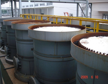 催化微電解是在不通電的情況下,利用微電解設(shè)備中填充的微電解填料產(chǎn)生“原電池”效應(yīng)對廢水進行處理。當(dāng)通水后,在設(shè)備內(nèi)會形成無數(shù)的電位差達1.2V 的“原電池”。“原電池”以廢水做電解質(zhì),通過放電形成電流對廢水進行電解氧化和還原處理,以達到降解有機污染物的目的。在處理過程中產(chǎn)生的新生態(tài)[.O H] 、[H] 、[O]、Fe2+ 、Fe3+等能與廢水中的許多組分發(fā)生氧化還原反應(yīng),比如能破壞有色廢水中的有色物質(zhì)的發(fā)色基團或助色基團,甚至斷鏈,達到降解脫色的作用;生成的Fe2+ 進一步氧化成Fe3 +,它們的水合物具有較強的吸附- 絮凝活性,特別是在加堿調(diào)pH 值后生成氫氧化亞鐵和氫氧化鐵膠體絮凝劑,它們的絮凝能力遠遠高于一般藥劑水解得到的氫氧化鐵膠體,能大量絮凝水體中分散的微小顆粒、金屬粒子及有機大分子。該工藝具有適用范圍廣、處理效果好、成本低廉、處理時間短、操作維護方便、電力消耗低等優(yōu)點,可廣泛應(yīng)用于工業(yè)廢水的預(yù)處理和深度處理中。應(yīng)用廢水種類:染料廢水、焦化廢水、醫(yī)藥廢水、農(nóng)藥廢水、樹脂廢水、助劑廢水、制革廢水、電鍍廢水、造紙廢水、淀粉廢水、大蒜廢水、垃圾滲濾液等工業(yè)類廢水。