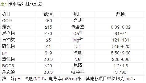 電滲析脫鹽裝置進(jìn)水為污水場(chǎng)外排水,在污水場(chǎng)正常運(yùn)轉(zhuǎn)時(shí),其外排水水質(zhì)如表1。