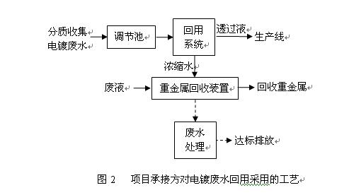 經(jīng)過(guò)多年電鍍廢水及涉重金屬的研究及工程實(shí)踐,摸索出一套成熟穩(wěn)定的電鍍廢水回用技術(shù)(連續(xù)錯(cuò)流抗污染多級(jí)膜法回用),把電鍍廢水分質(zhì)收集,單獨(dú)膜法回用,回用水可分別用到對(duì)應(yīng)的生產(chǎn)線或作為自來(lái)水使用;目前項(xiàng)目承接方采用的回用理念是“先回用后處理”,把廢水先進(jìn)行分質(zhì)收集,單獨(dú)膜法回用,回收率≥85%,濃縮后的廢水中重金屬離子濃度可提升到100倍以上,對(duì)該濃縮廢水可通過(guò)重金屬回收裝置(專利號(hào):CN201010578758.5)進(jìn)行重金屬的提取,大大提高了重金屬的回收效率,回收重金屬的同時(shí),也減輕后需廢水處理的負(fù)荷。