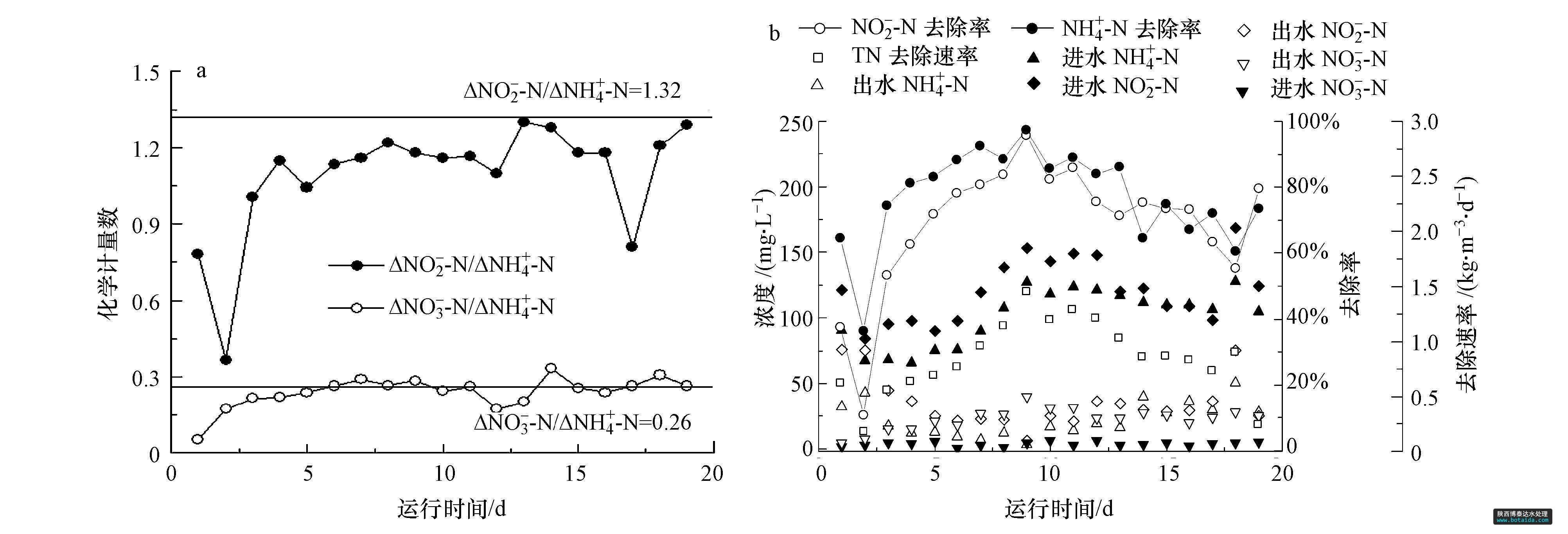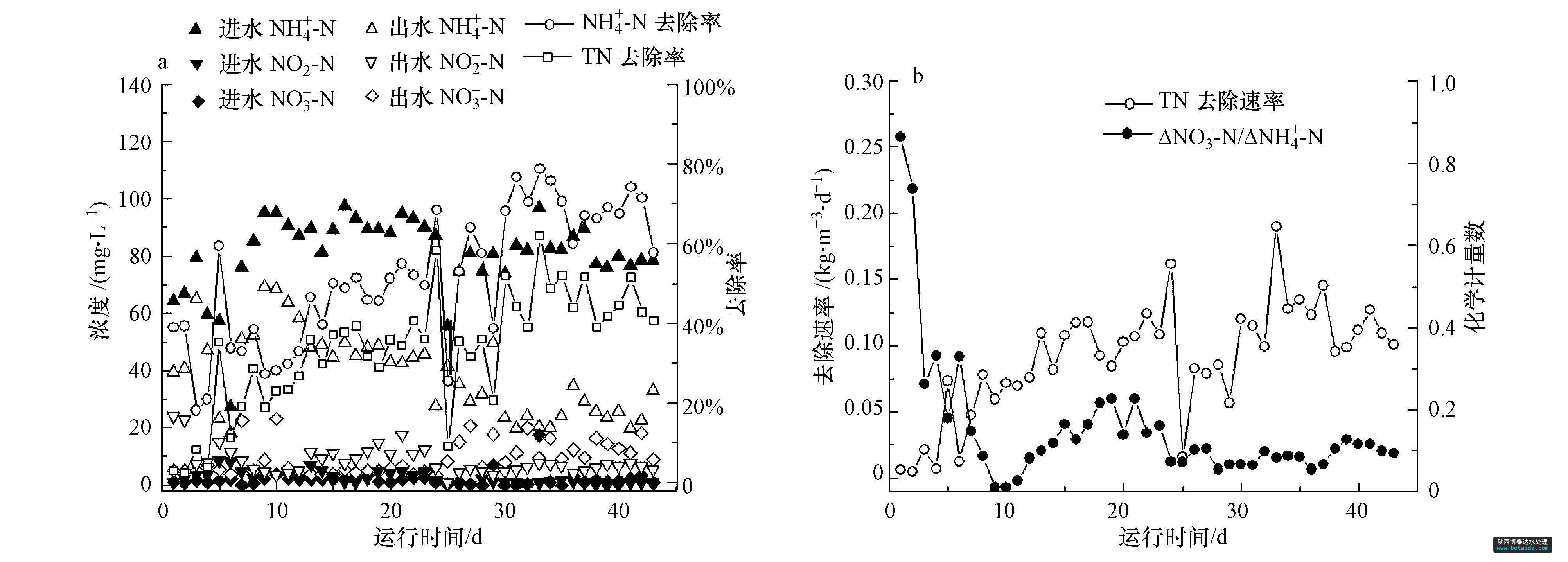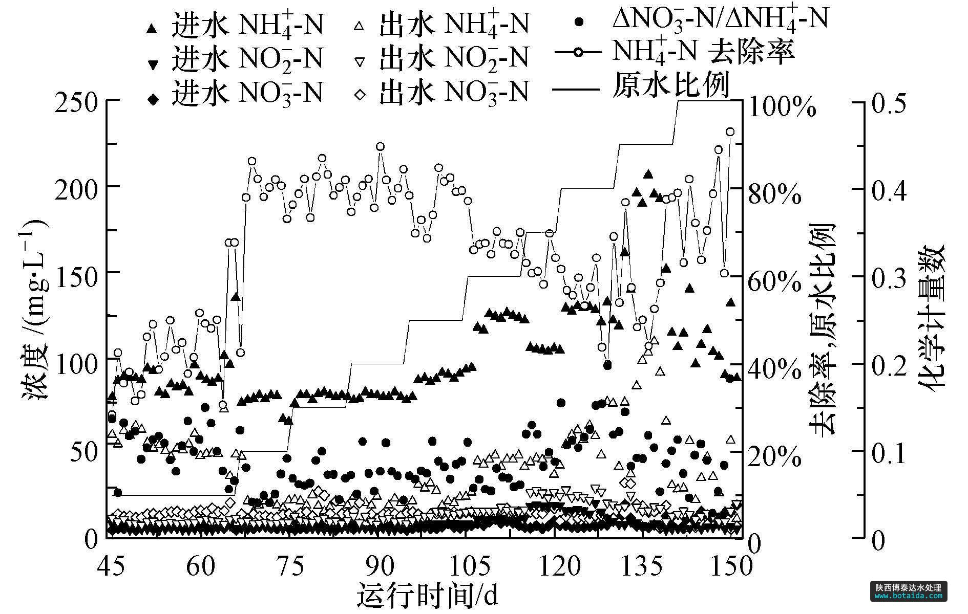 圖4 CANON工藝的微生物馴化階段運(yùn)行效果