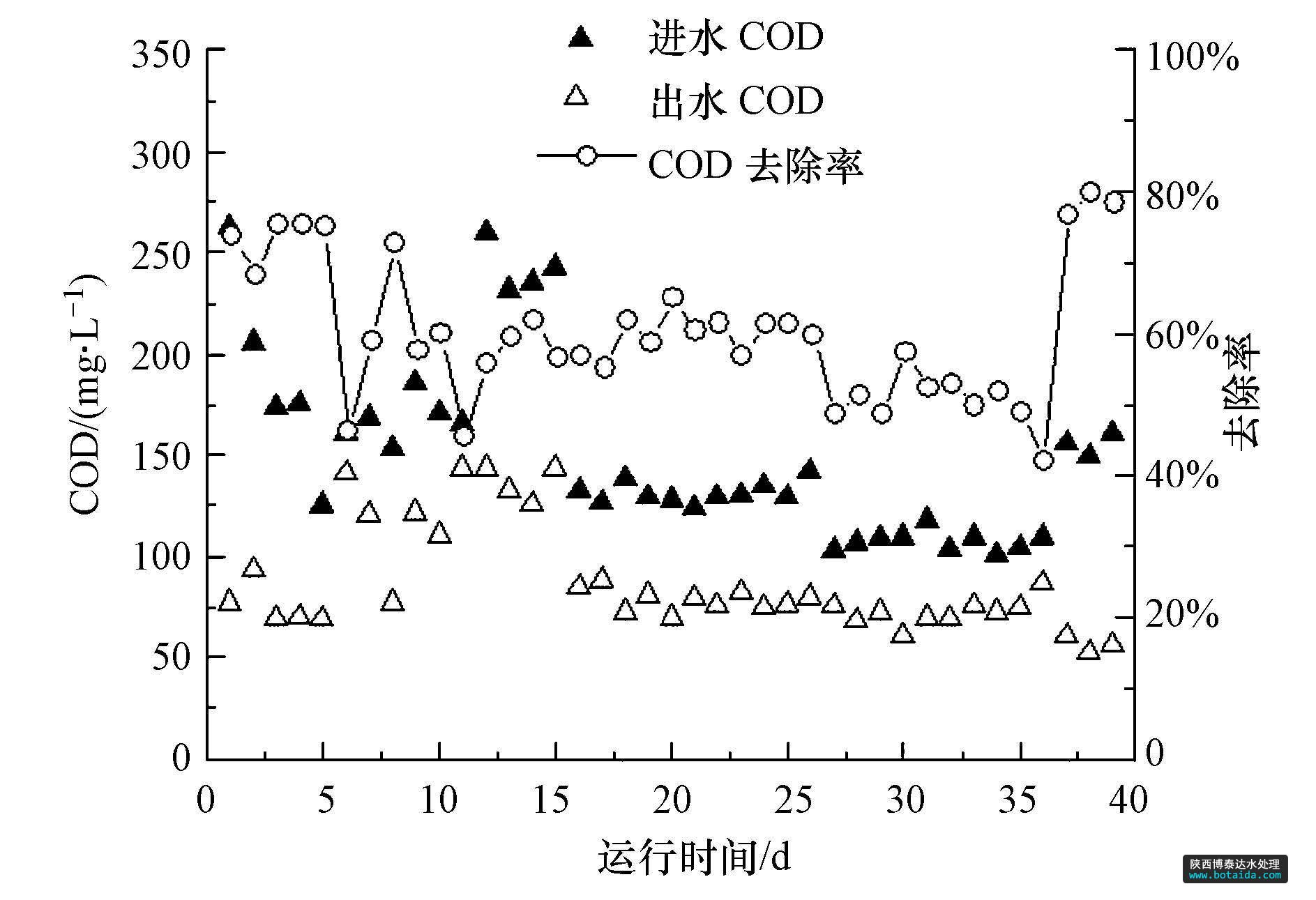 CANON工藝系統(tǒng)中的微生物馴化成功后,考察工藝對(duì)于有機(jī)物及氮素的去除效果.