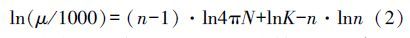 式中:μ為表觀黏度(mPa · s); N 為轉速(r · s-1); K為流體稠度系數(shù)(Pa · sn); n為流體流變指數(shù)(無因次).
