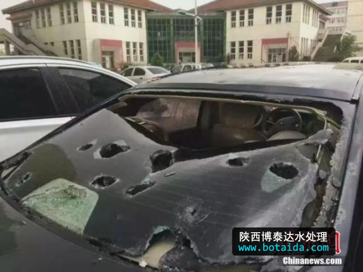 2016年6月13日,雞蛋大的冰雹襲擊山西長(zhǎng)治,多輛汽車玻璃被砸碎。  中新網(wǎng) 圖