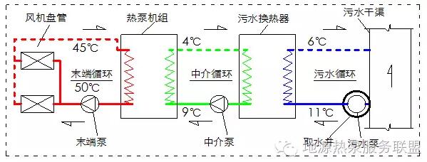 其中的技術(shù)關(guān)鍵是污水或地表水的高效換熱循環(huán),以及各子循環(huán)的有效匹配,實現(xiàn)系統(tǒng)的低能耗運行,達到真真節(jié)能環(huán)保的目的。