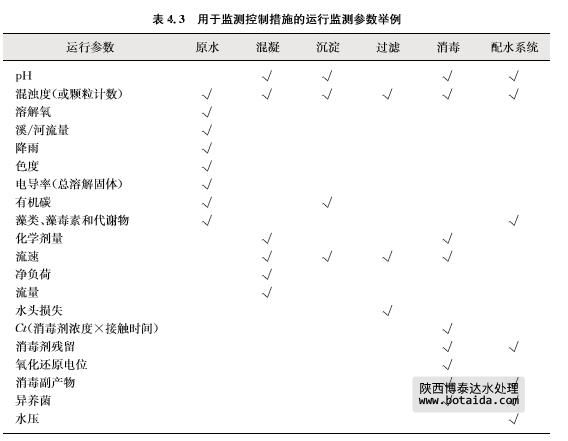 運(yùn)行監(jiān)測包括參數(shù)測量或者觀測活動。所選定的運(yùn)行監(jiān)測參數(shù)應(yīng)能反映每步控制措施 的有效性,能及時(shí)指示運(yùn)行情況,并能很快地被測量,能及時(shí)采取適當(dāng)?shù)膽?yīng)對措施。像一些 可測量的變量,如余氯、 pH和渾濁度,或可觀察到的因子,諸如防蟲網(wǎng)的完整性。 腸道病原體和指示生物在運(yùn)行監(jiān)測中應(yīng)用有限,因?yàn)樘幚砗头治鏊畼铀钑r(shí)間太長,來 不及在供水之前對操作做出調(diào)整。