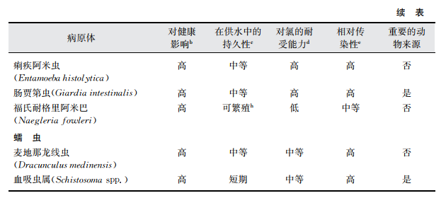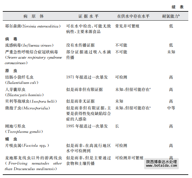 a該表中的病原體在飲用水供應(yīng)中的發(fā)生與公眾衛(wèi)生密切相關(guān)這一事實(shí)已經(jīng)被證實(shí)。更多關(guān)于本表中病原體和其 他病原體信息見(jiàn)第11章內(nèi)容。