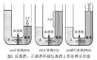 正滲透膜技術(shù)屬于膜分離過程。水從高水化學(xué)勢(shì)區(qū)通過選擇性滲透膜向低水化學(xué)勢(shì)區(qū)進(jìn)行轉(zhuǎn)移。選擇性滲透膜分隔的高水化學(xué)勢(shì)區(qū)和低水化學(xué)勢(shì)區(qū)所存在的滲透壓差是正滲透過程的驅(qū)動(dòng)力。正滲透技術(shù)具有低能耗、較高的水通量和回收率、不易結(jié)垢和可處理高濃鹽水等優(yōu)點(diǎn)。