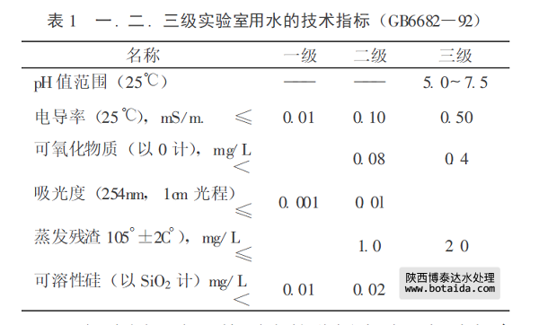 國家標準規(guī)定有分析實驗室用水的技術(shù)指標。分析實驗室用水的技術(shù)指標見下表,