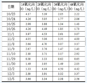 表3 各氧化溝實(shí)測DO數(shù)據(jù)