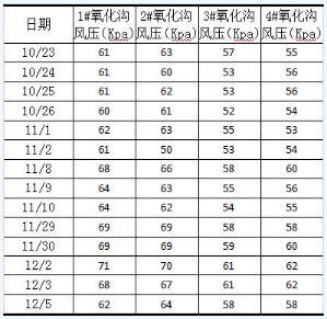 表2 各氧化溝運(yùn)行風(fēng)壓數(shù)據(jù)